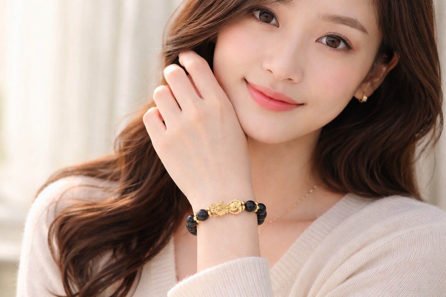 • 手鍊佩戴: 通常戴左手(左手吸納能量),貔貅頭部朝向小指方向,象徵外咬錢財。